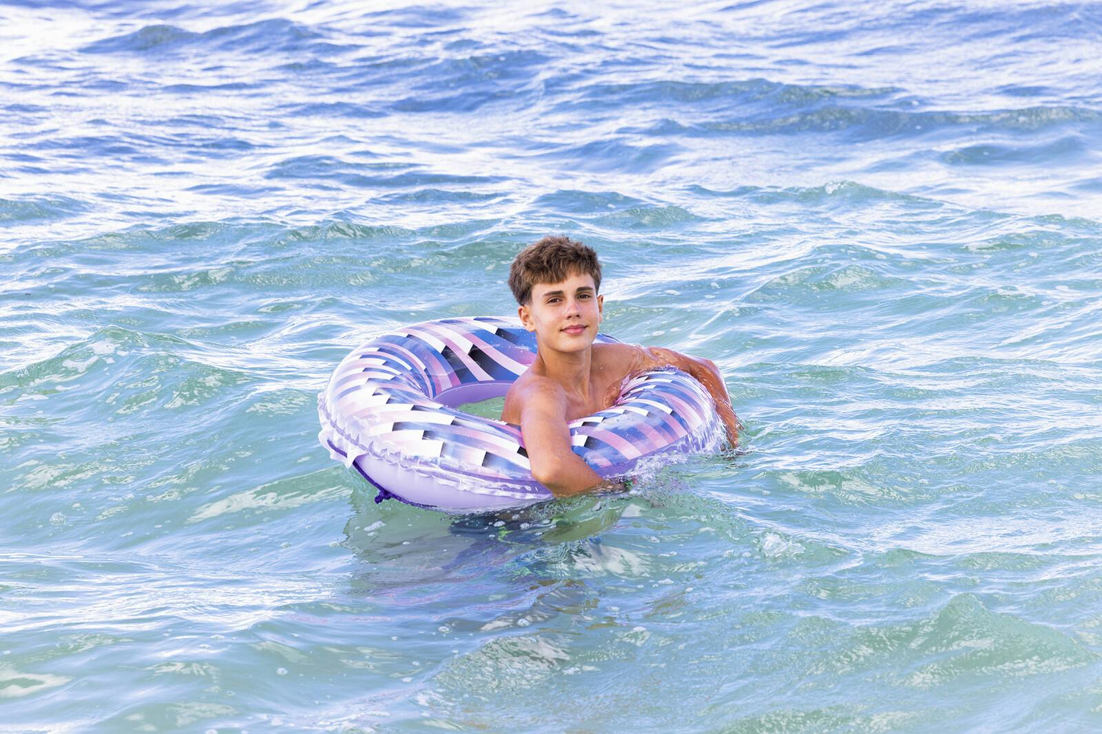 膨らんだ状態の浮輪の内周が約110~115センチの浮輪です。男女問わず大人1人が入れる大きさです。かんたん空気栓装着商品。ロープ付
