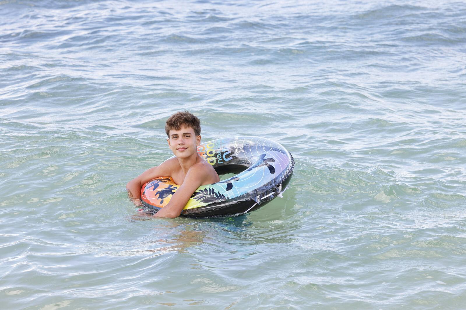 膨らんだ状態の浮輪の内周が約110~115センチの浮輪です。男女問わず大人1人が入れる大きさです。かんたん空気栓装着商品。ロープ付