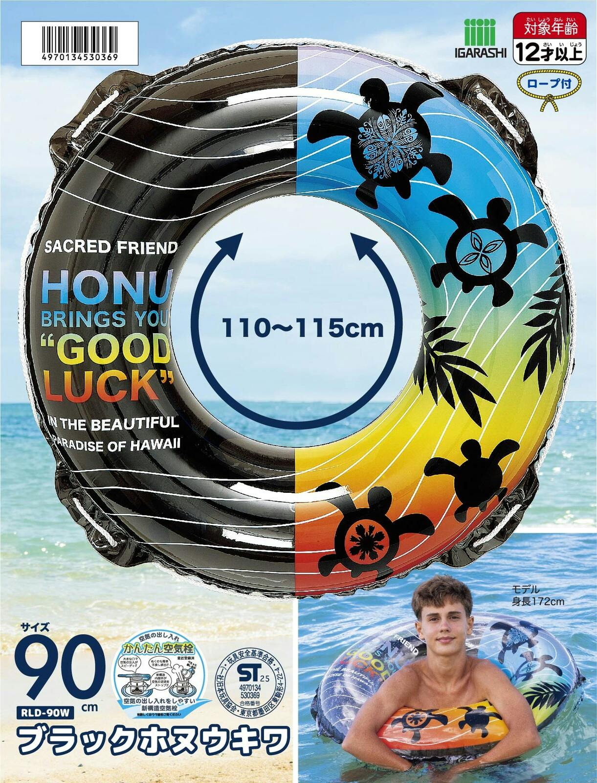【男女問わず大人が使えるサイズの浮輪 ブラックホヌ ウキワ 浮き輪 うきわ90cm】 ビーチ 海 プール グッズ 水遊び 幼児 子供 男子 大人 女子 #4970134530369 イガラシ