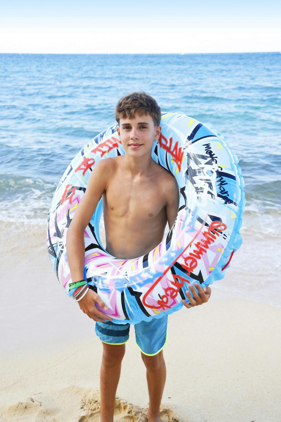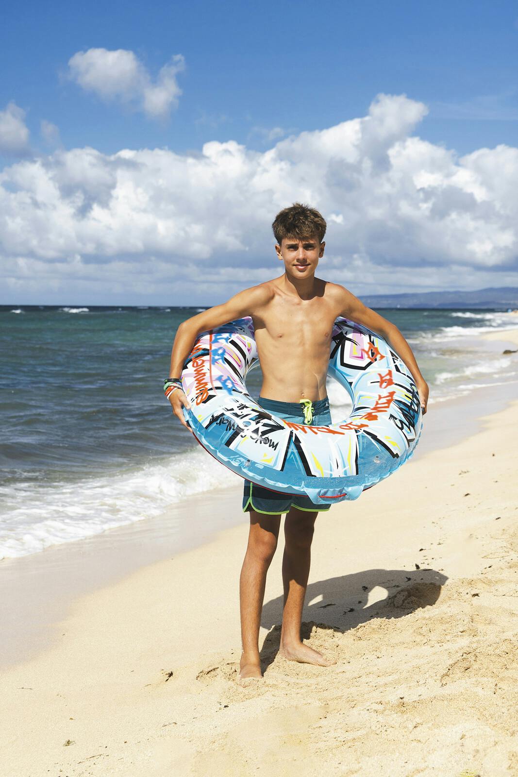 膨らんだ状態の浮輪の内周が約130~135センチとかなり大きめな浮輪です。大人1人がゆったりと入れる大きさです。かんたん空気栓装着商品。ロープ付