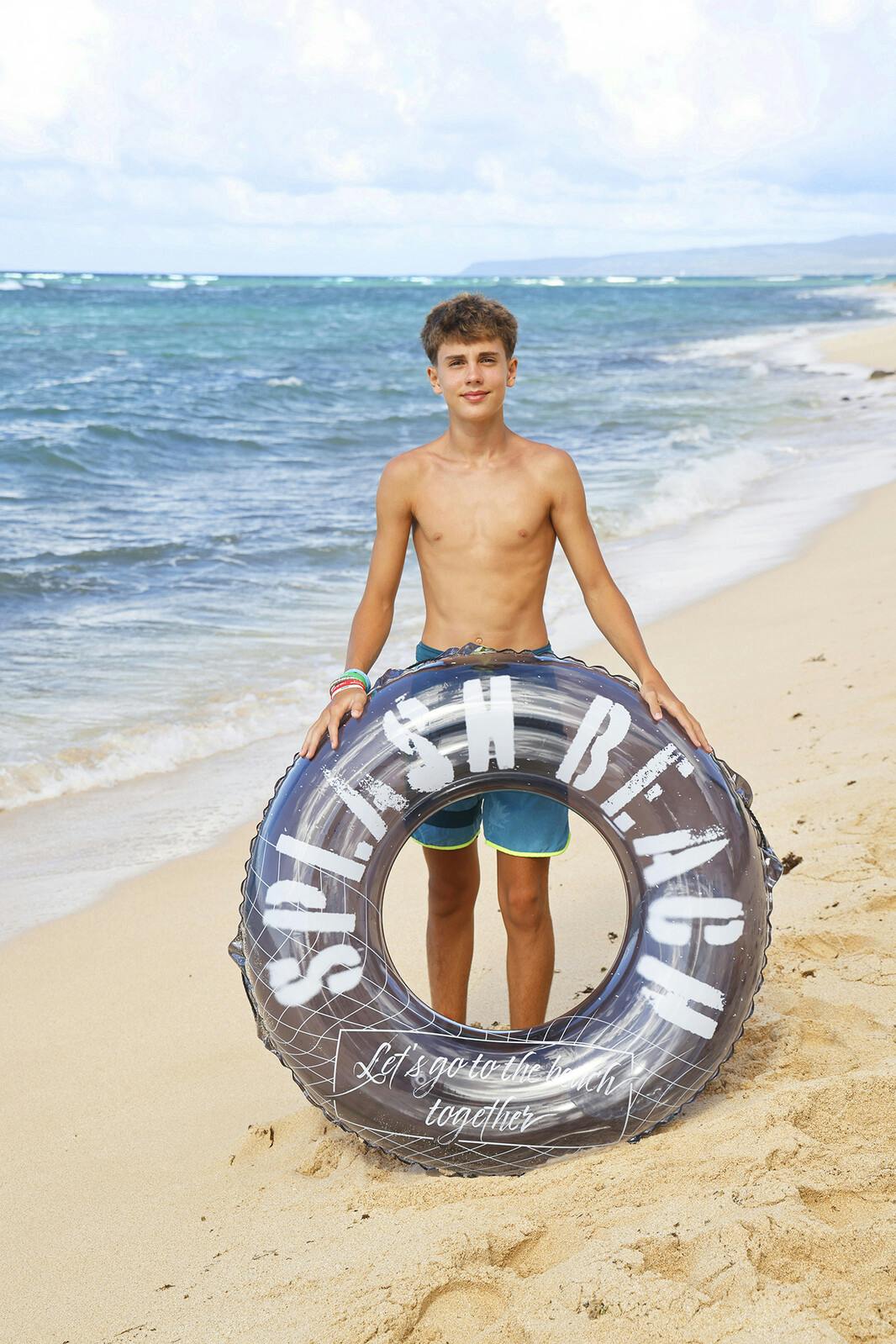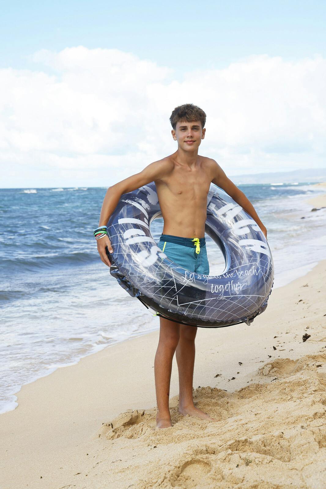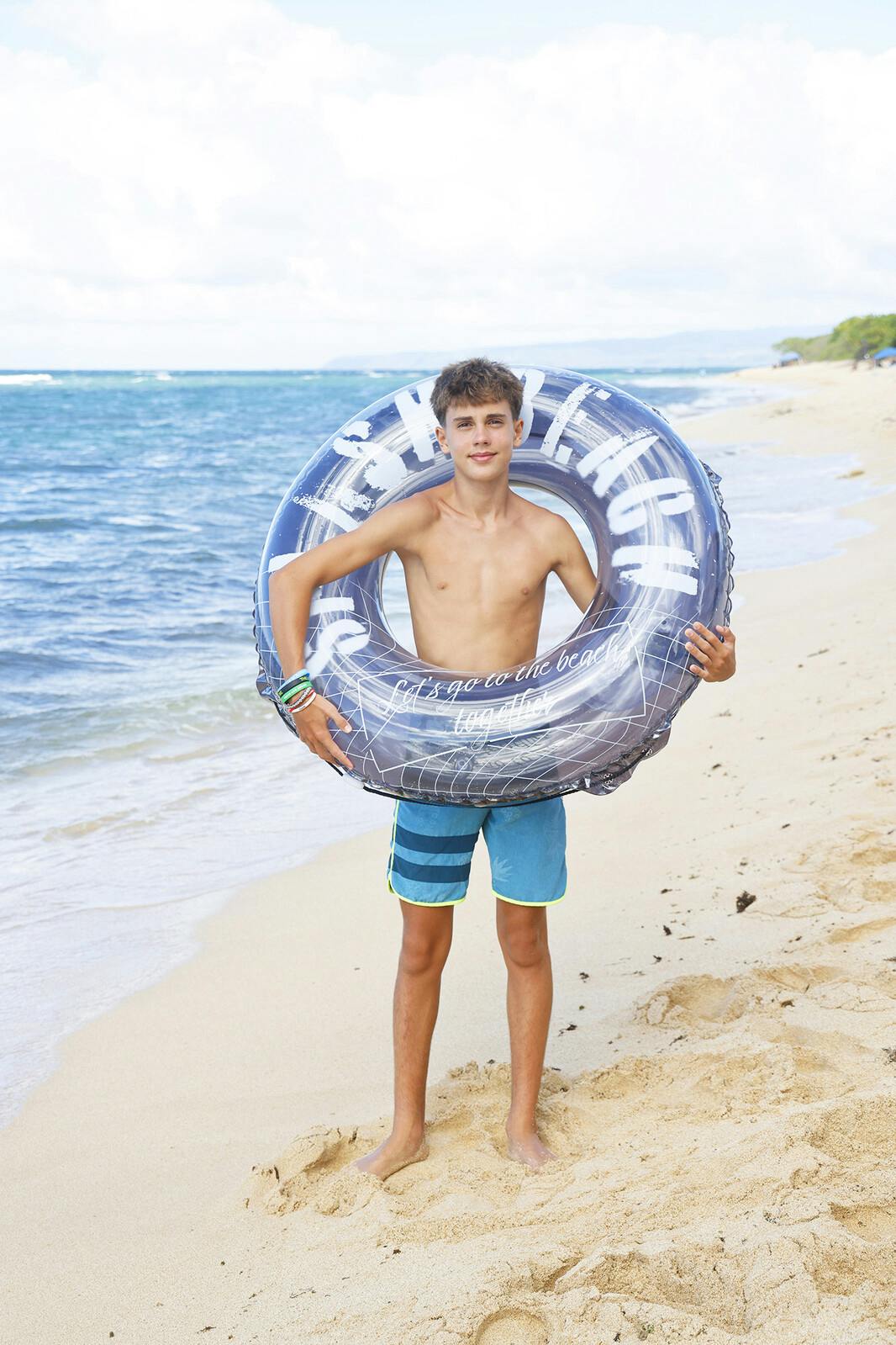 膨らんだ状態の浮輪の内周が約145~150センチとかなり大きめな浮輪です。大人1人がゆったりと入れる大きさです。かんたん空気栓装着商品。ロープ付