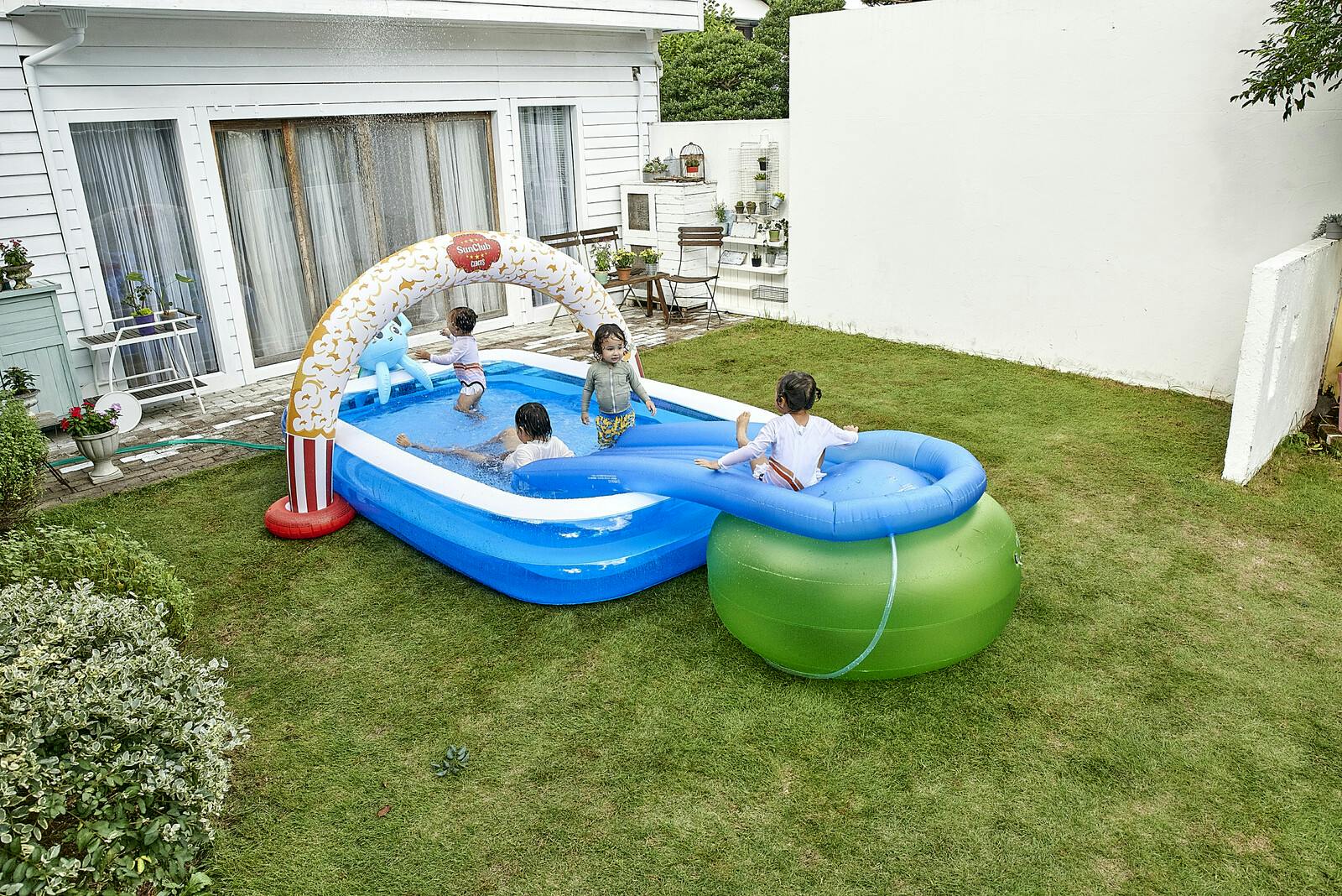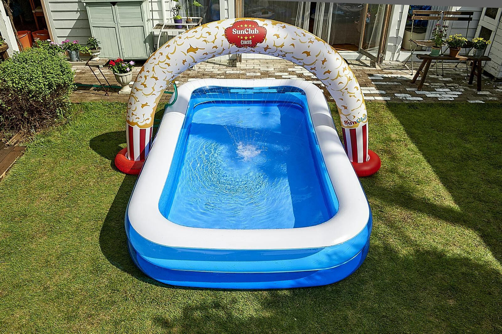 海外のインフレータブルブランド「JILONG」のプール用アーチ形シャワーです。付属のホースジャックにホースをつなげる事でアーチ部分から水が出てシャワーを楽しめます。