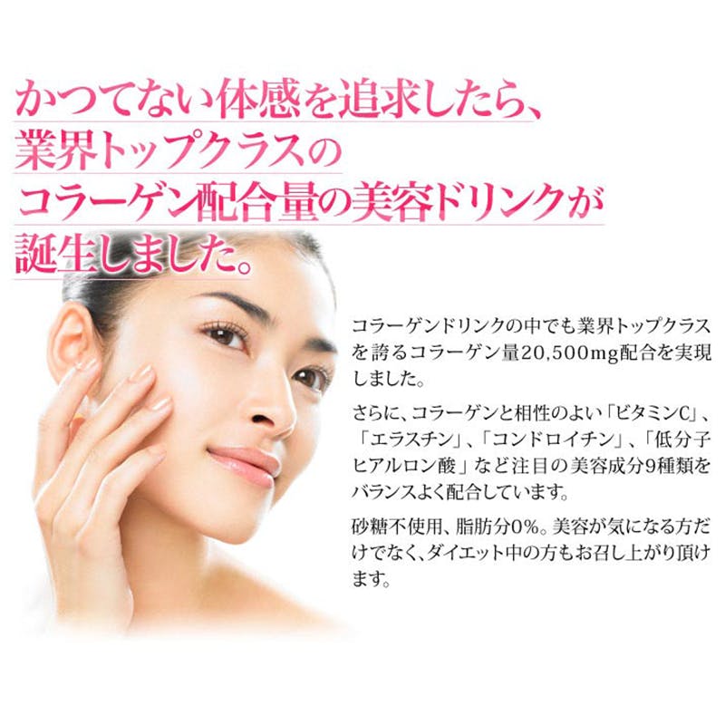 フィッシュコラーゲンペプチド(ゼラチンを含む、国内製造)、コンドロイチン含有エイ軟骨抽出物、加水分解エラスチン/酸味料、香料、ビタミンC、ヒアルロン酸、甘味料(アセスルファムK、スクラロース)、グルコン酸亜鉛、ナイアシン、グレープフルーツ種子抽出物、ビタミンB2、ビタミンB6、ビタミンB1