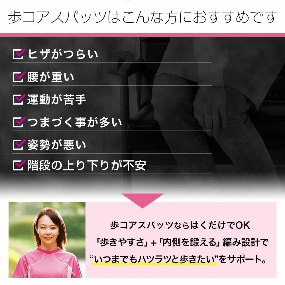 膝・腰・骨盤をサポート、歩行サポートテーピング編みで楽に歩ける。内側重心バランスに導きながらコアトレーニングでロコモ対策!凸凹ウェーブ編みの伸縮で筋肉・筋膜を刺激!