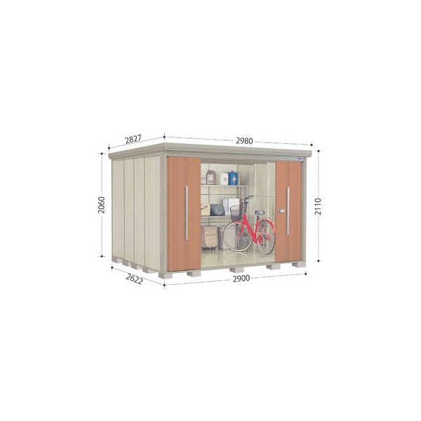 田窪工業所 タクボ物置 Mr.ストックマン ダンディ 側面棚タイプ ND-Z2926Y 一般型 結露減少屋根 扉カラー:トロピカルオレンジ