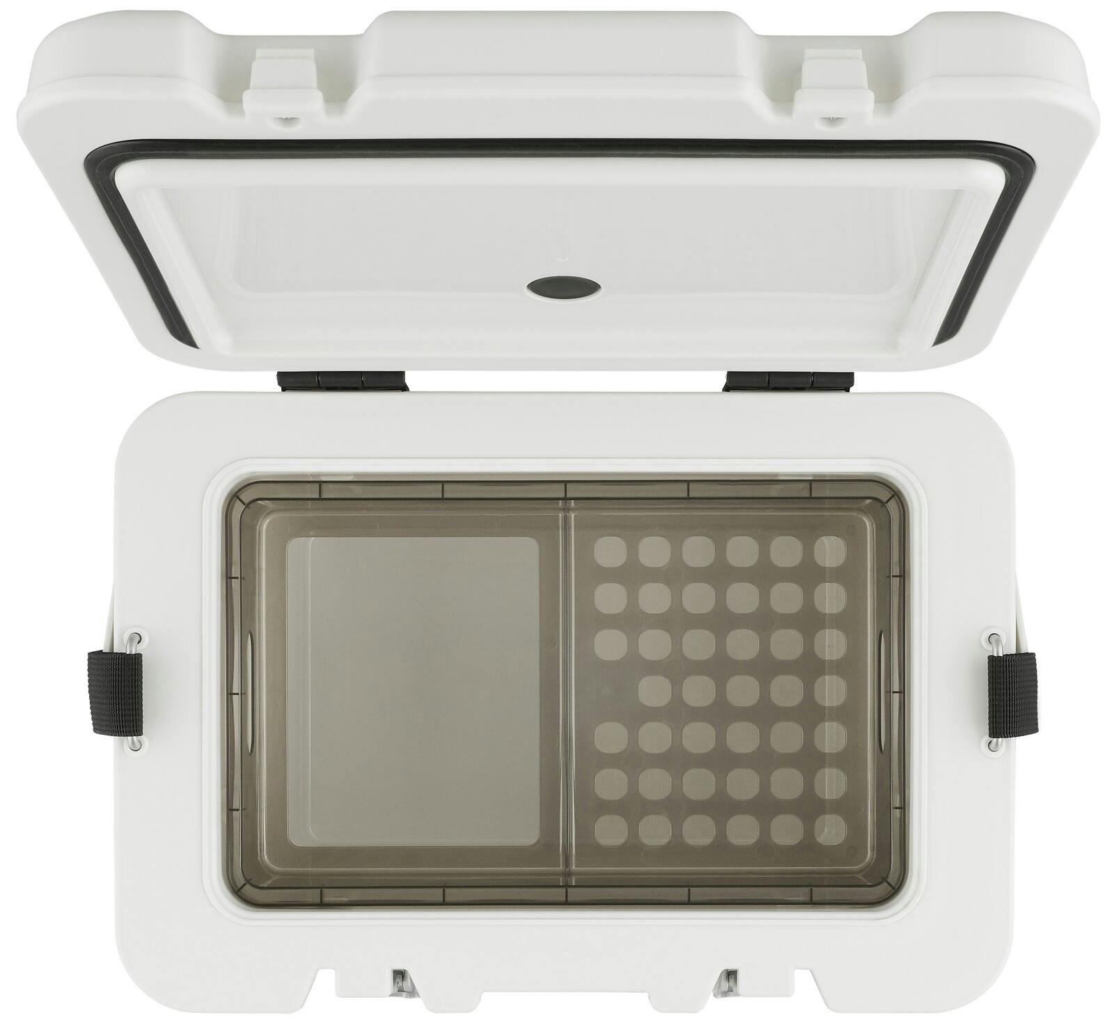 ●高保冷を実現する6面真空断熱パネル。6面すべてに真空断熱パネル。真空断熱パネルと発泡ウレタンの2つの機能を掛け合わせることで高保冷を実現。釣り需要にも対応。インナートレーで釣り時の食料等の保管に。肩掛けベルトで両手が空く。