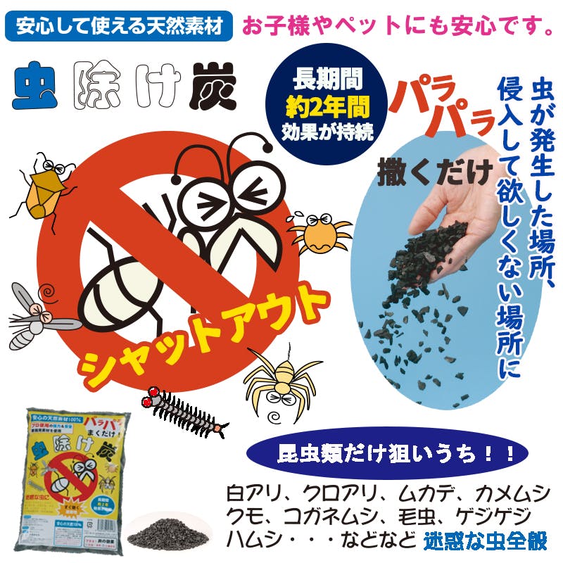 【安心の天然素材 虫除け炭 3個セット】 ちあふる 天然素材 天然ピレトリンマイクロカプセル シロバナムシヨケギク 除虫菊 白アリ クロアリ ムカデ カメ虫 クモ 天然素材 コガネ虫 JAN:4560162560188