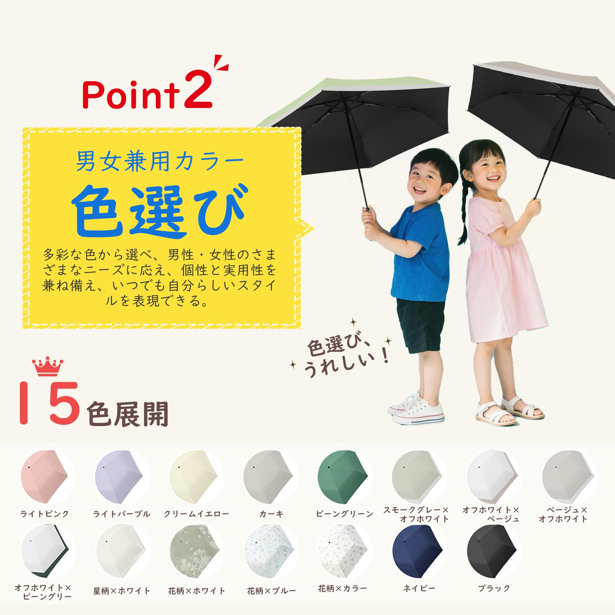 • 傘 子供 女の子 男の子 日傘 超軽量 コンパクト 折りたたみ傘 幼稚園 保育園 小学生 安全 無地 UVカット100% 完全遮光 遮熱 ワンタッチ キッズ 子ども 耐風 ベージュ×オフホワイト
