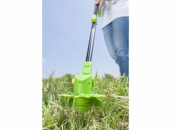 軽くて操作ラクラク!毎分約13500回転のパワフルさ!●色/グリーン●コードレスで仕事効率大幅アップ!充電式コードレスなので、場所を選ばずどこでも使用可能。●握りやすい持ち手でどなたでもラクラク操作。●スイッチは誤作動防止の安全ロックレバー付きのダブルスイッチを採用。●約90分充電で約20~40分の連続使用が可能!●電源アダプターどなたでも安心な安全設計●ダブルスイッチ/誤作動を防止します。●安全フリープロテクターを採用/草刈り時の危険をガード。