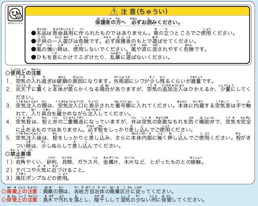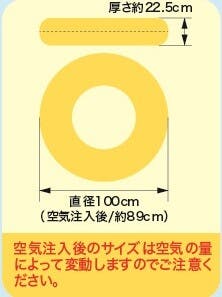 本体:100cm/本体内周(空気注入後):130~135cm/パッケージサイズ:W24×L32×T3cm