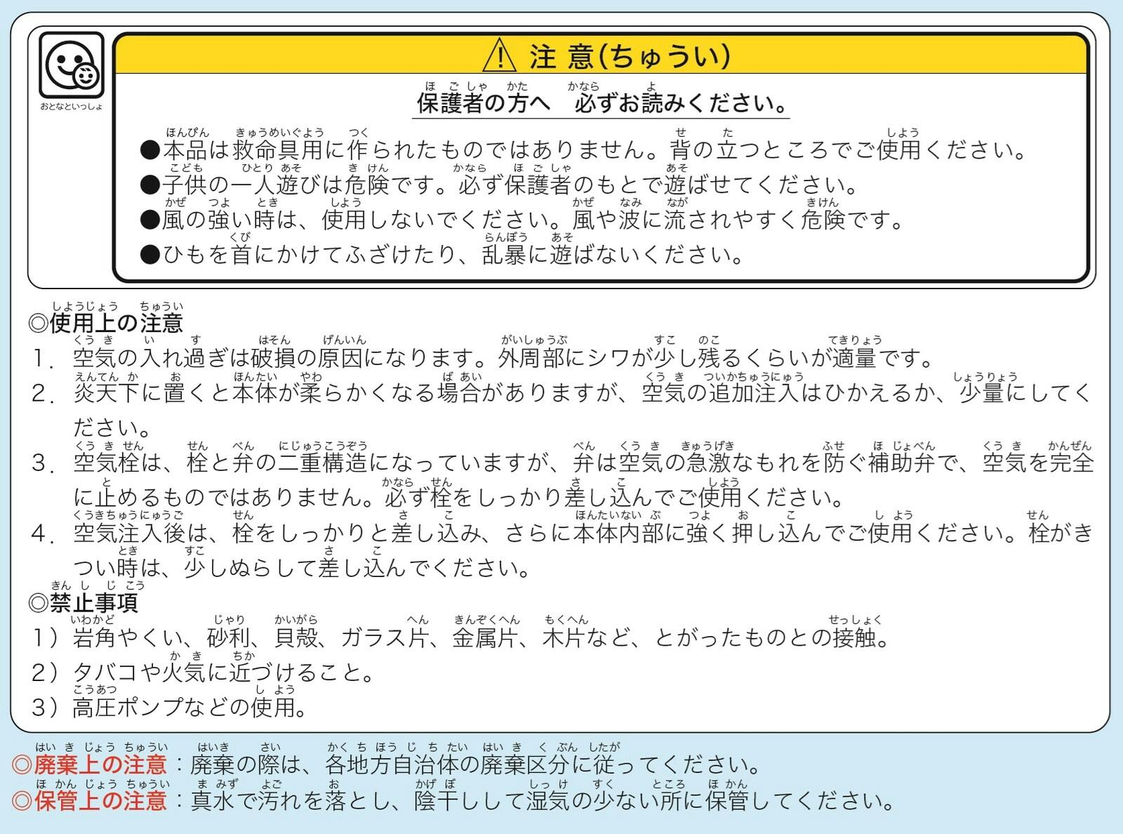 サイズの表記は目安となっております。 空気の量やビニールの伸縮によりサイズが異なります。