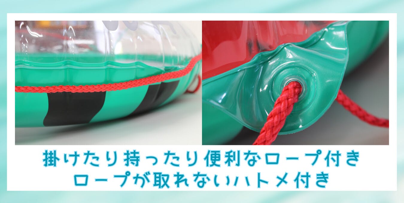 本体・空気栓:塩化ビニール(PVC)/ロープ:ポリプロピレン(PP)