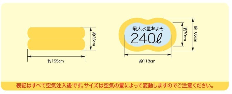サイズの表記は目安となっております。 空気の量やビニールの伸縮によりサイズが異なります。