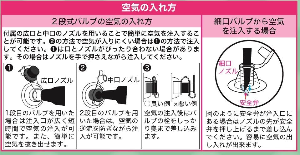 本製品は空気入れビニール商品(浮輪やビニールプール、ビーチボール等) 専用の空気注入、排出ポンプです。 思わぬ怪我の原因にもなりますので、他の用途へのご使用はお控えください。 10分以上連続して作動させないでください。