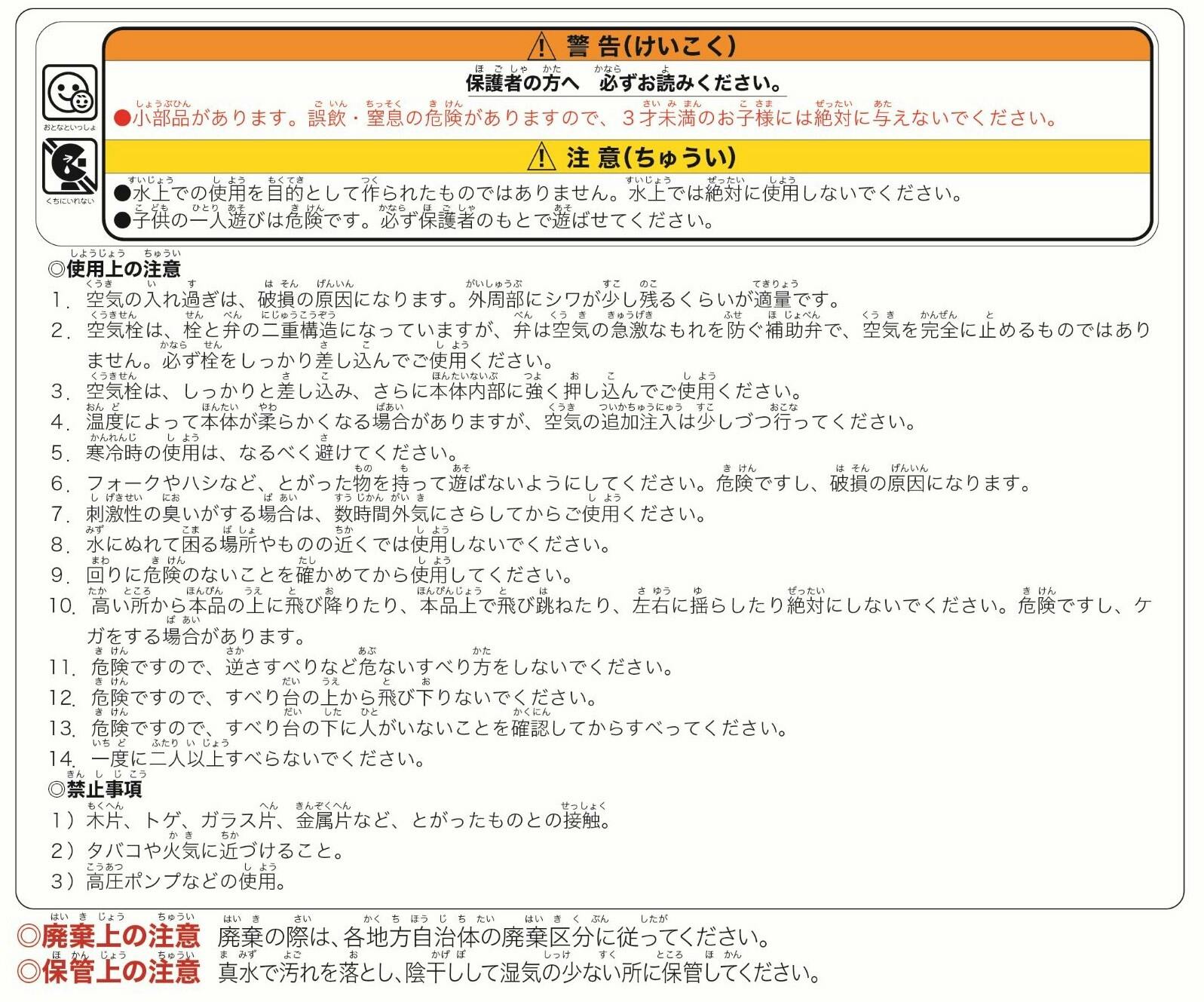 サイズの表記は目安となっております。 空気の量やビニールの伸縮によりサイズが異なります。