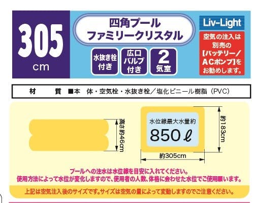 305×183cm 大型サイズ四角プール ファミリークリスタル【直輸入海外ブランド製】 #4904922819312 trosoku