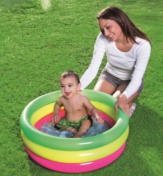 海外ブランド【BESTWAY】より直輸入のプールです。乳幼児使用を想定した小型サイズのプールとなっており、プールのデビューに最適な商品です。☆底の部分も空気が入りクッションになる為、お子様にも安心です。☆空気注入の際は別売りの電動ポンプ使用をおすすめしております。水位線水量:約41L4気室・底部クッション用気室付き家庭用プール、ベランダ、小型プール、丸型、リング、クッション、幼児用、ベビー、赤ちゃん、安心プール、水遊び、