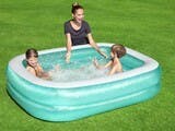 海外ブランド【BESTWAY】より直輸入のプールです。定番サイズの長方形プールで、子供2名で遊んで比較的ゆとりのあるサイズになります。大型空気栓を採用しておりますので、空気の注入や排出が容易になっています。☆空気注入の際は別売りの電動ポンプ使用をおすすめしております。水位線水量:約450L2気室・水抜き栓付き家庭用プール、四角プール、定番サイズ、使いやすい、子供2名、大型空気栓、空気入れ楽空気排出楽、庭、グリーン、戸建て