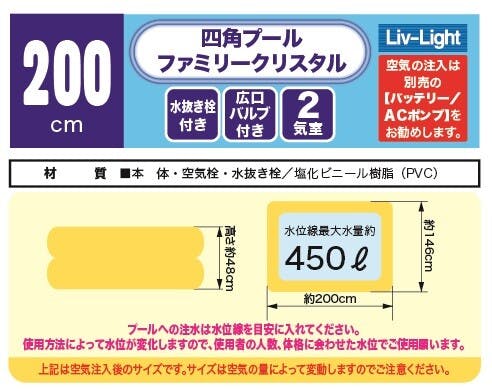 200×146cm 使いやすい定番サイズの四角プール ファミリークリスタル【直輸入海外ブランド製】リブライト #4904922819411 trosoku