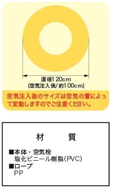 本体・空気栓:塩化ビニール(PVC)/ロープ:ポリプロピレン(PP)