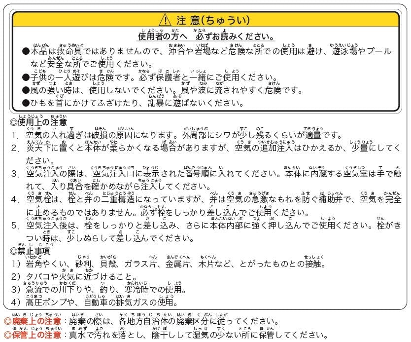 サイズの表記は目安となっております。 空気の量やビニールの伸縮によりサイズが異なります。