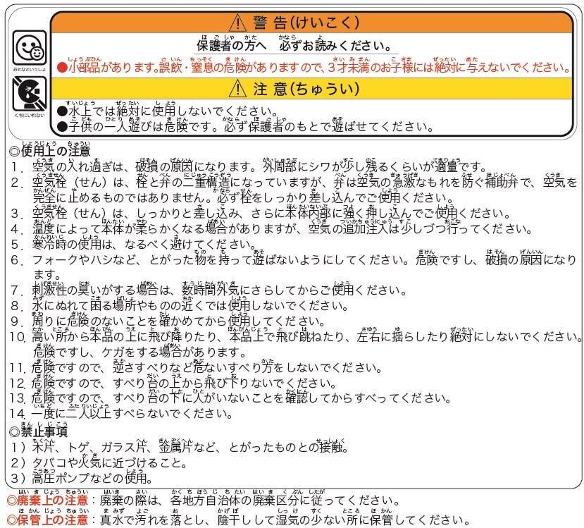 サイズの表記は目安となっております。 空気の量やビニールの伸縮によりサイズが異なります。