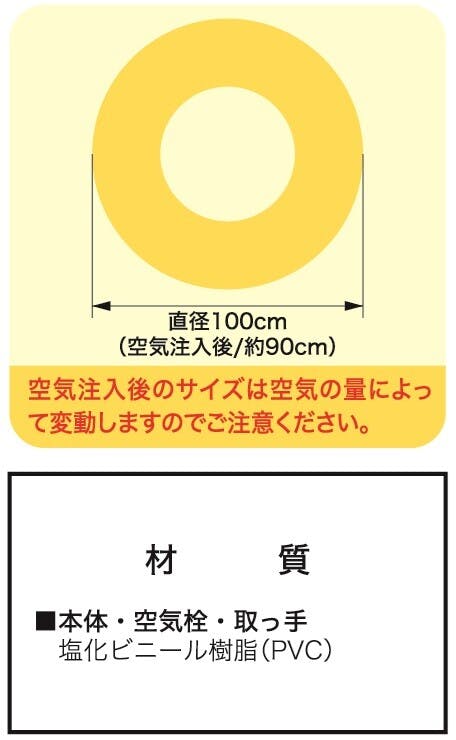 本体:100cm/本体内周(空気注入後):126~129cm/パッケージサイズ:W24×L35×T5cm