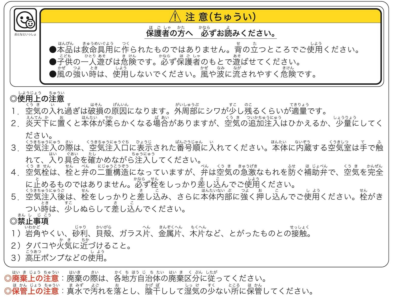 サイズの表記は目安となっております。 空気の量やビニールの伸縮によりサイズが異なります。