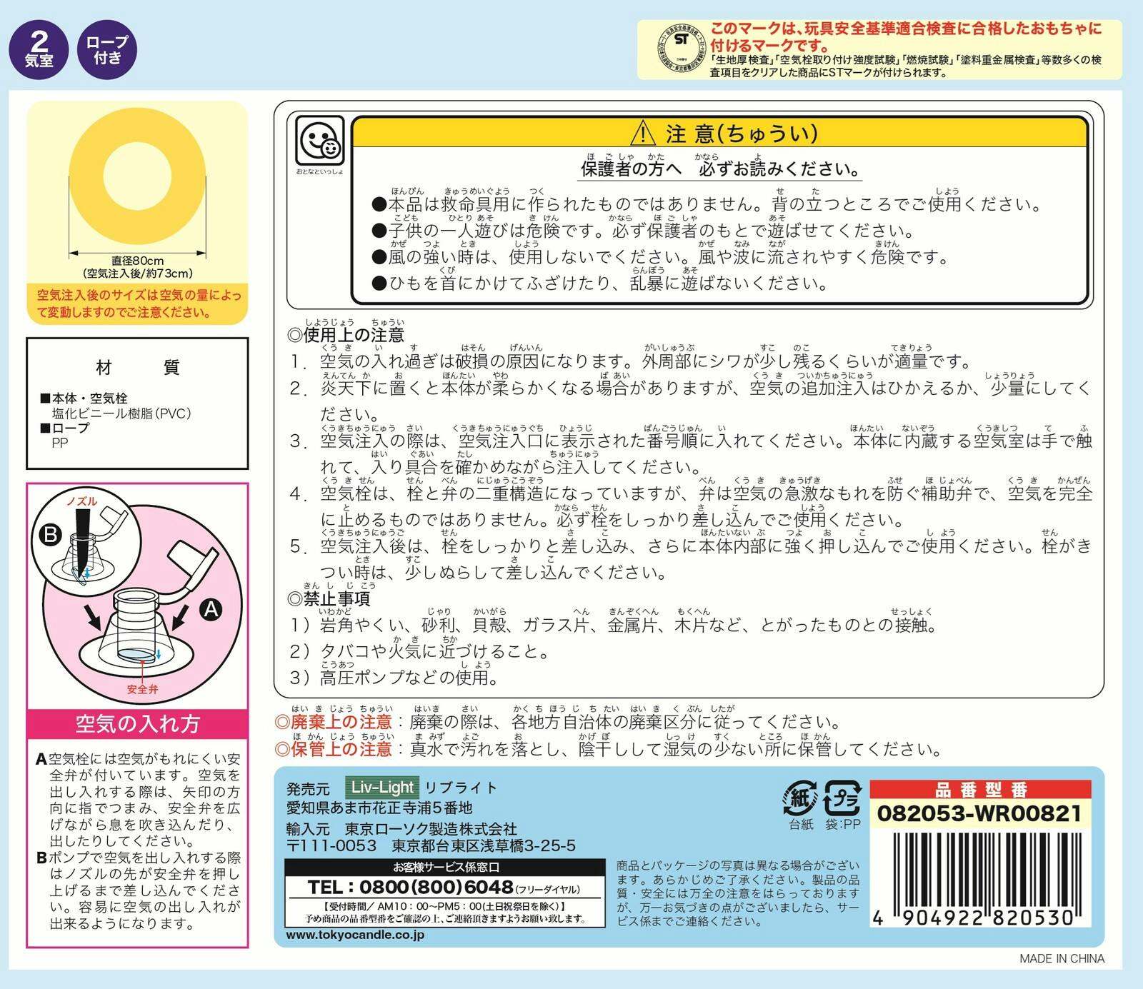 本体・空気栓:塩化ビニール(PVC)/ロープ:ポリプロピレン(PP)