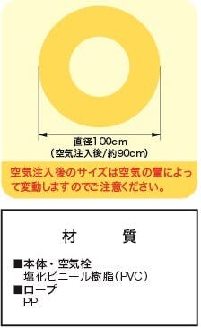 本体・空気栓:塩化ビニール(PVC)/ロープ:ポリプロピレン(PP)
