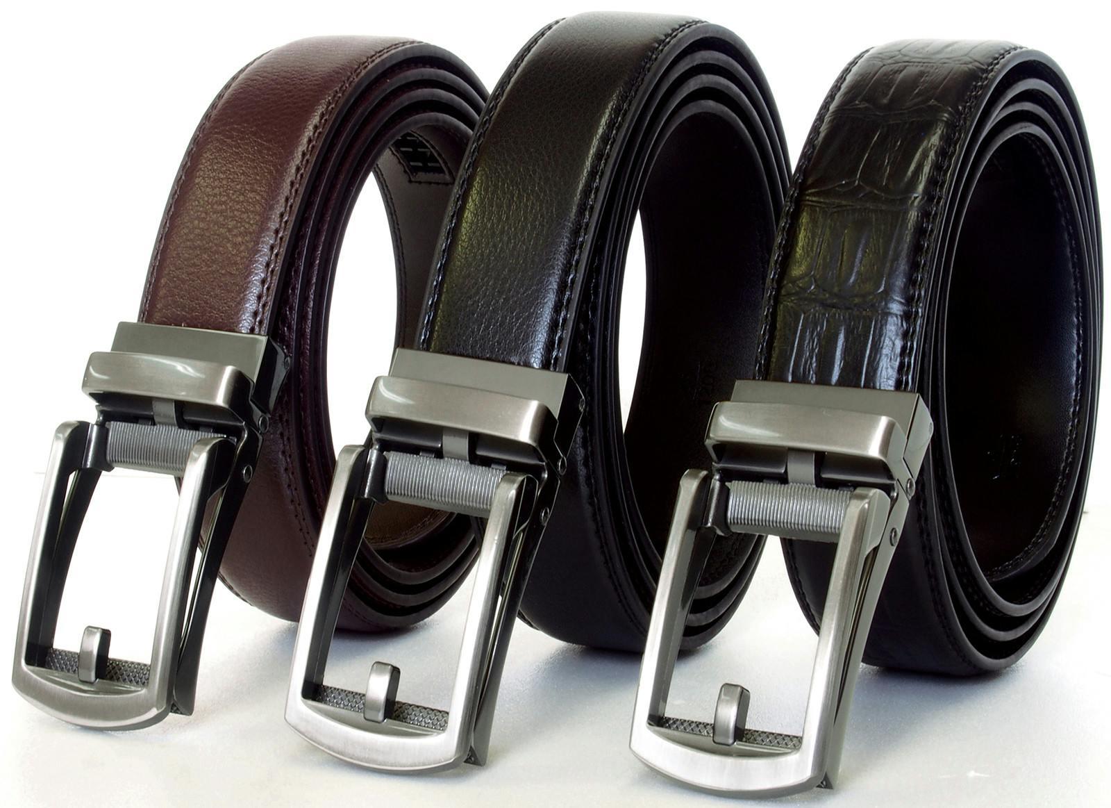 • 牛革ラチェット式ベルト3本組 黒・茶・黒(クロコ型押し)  #4589978817583 flife