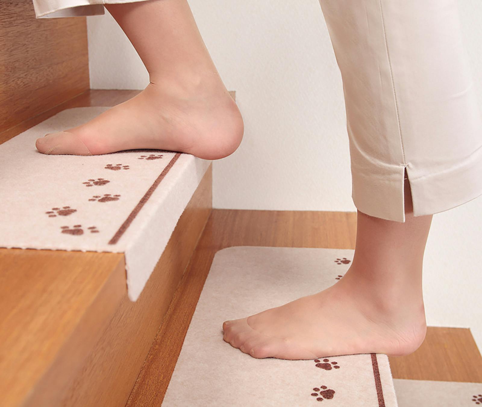 ペットの脚にもやさしい吸着階段マット。●段差がわかりやすくなり昇り降りも安心。キズ・汚れ防止に防音効果もあります。●表面のプリント柄にすべり止め加工。●緑茶消臭カテキン入り●お買い得!15枚組●丸洗いOK!
