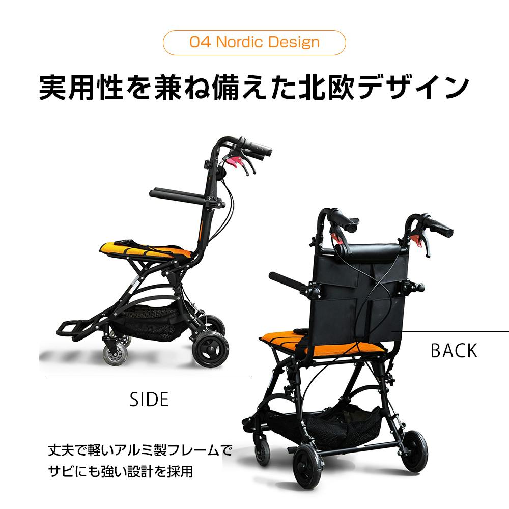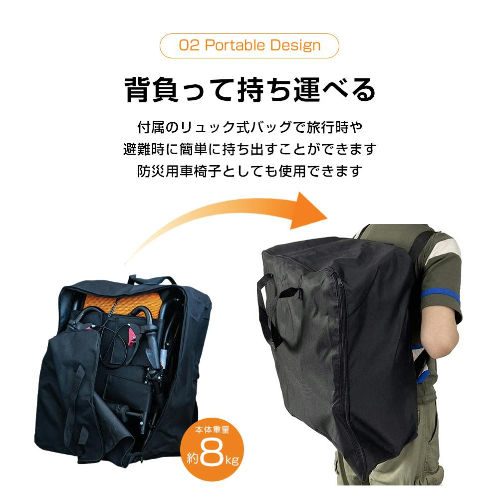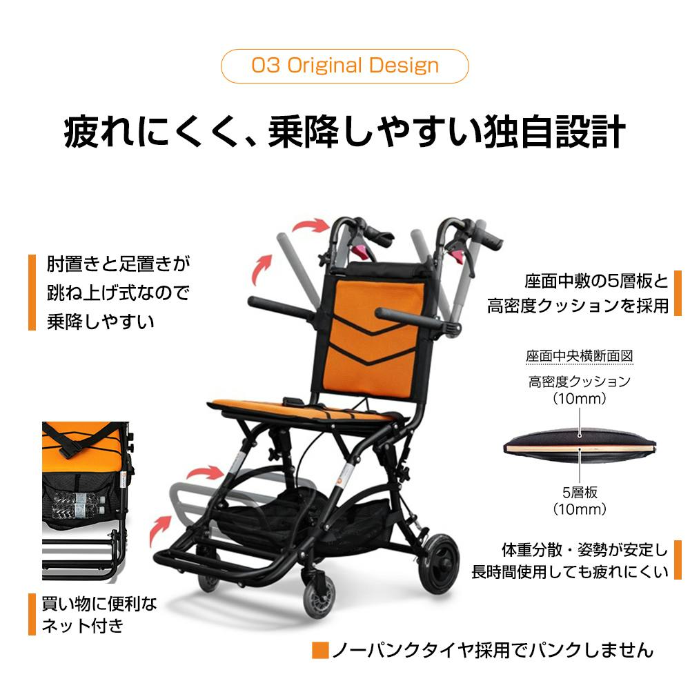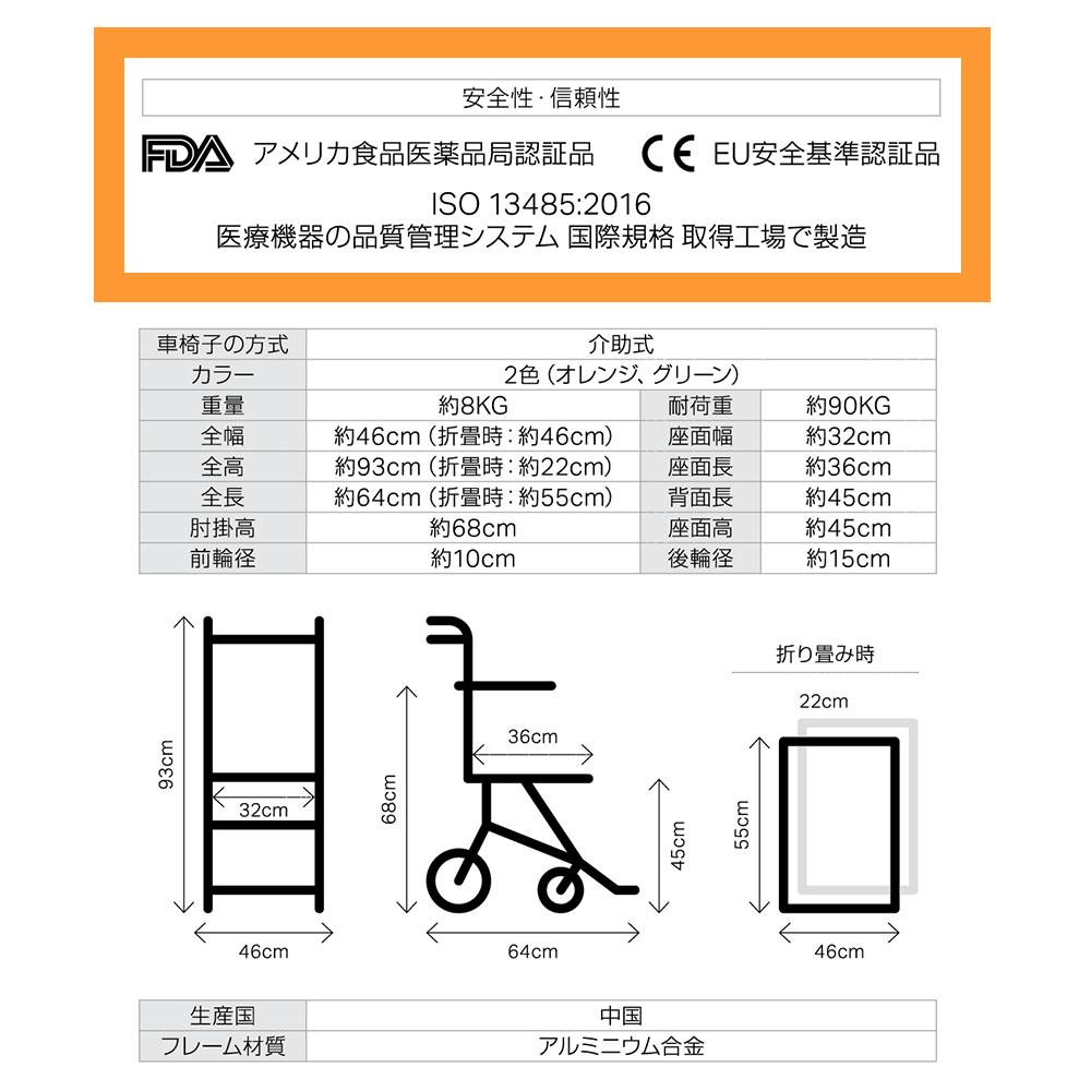 ■丈夫で軽量アルミ製フレーム設計でサビにも強い■ノーパンクタイヤなのでパンクの心配がありません■シニアにも握りやすい安心のブレーキ設計■肘置きと足置きが跳ね上げ式なので乗降しやすい■背負って持ち運べるリュック式バッグ付き(折り畳み時の収納、持ち運び用)