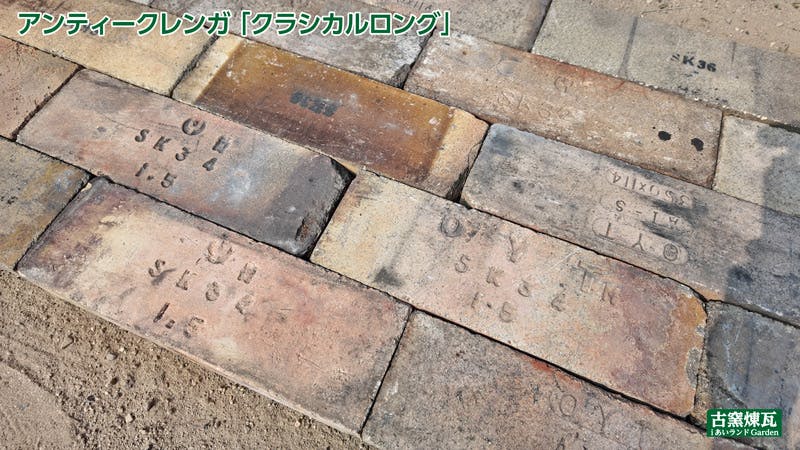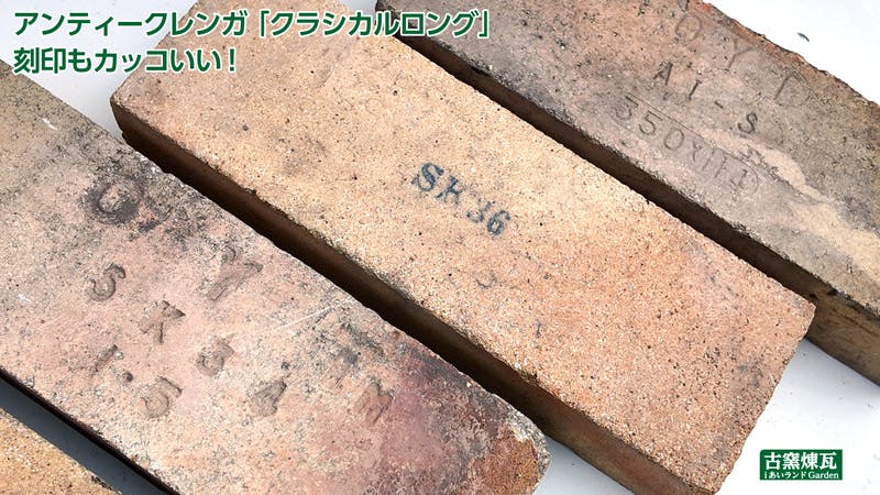 アンティークレンガのため入荷ロットにより刻印の種類・色合いが変わります