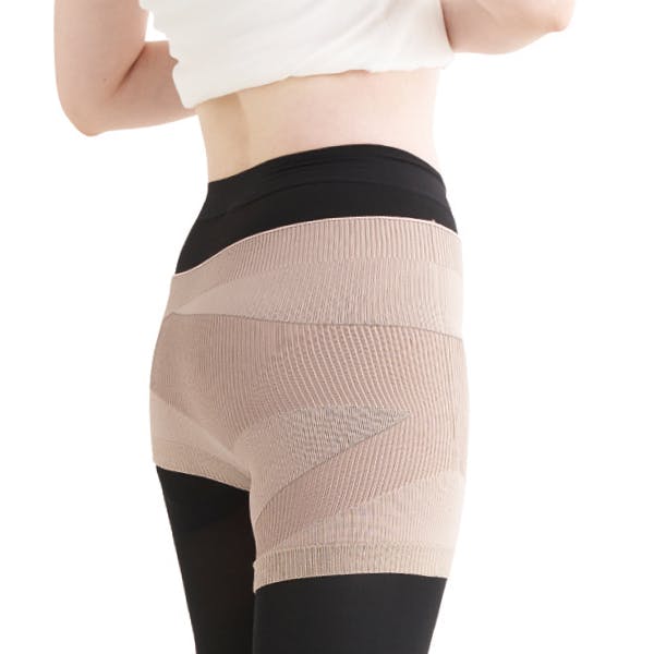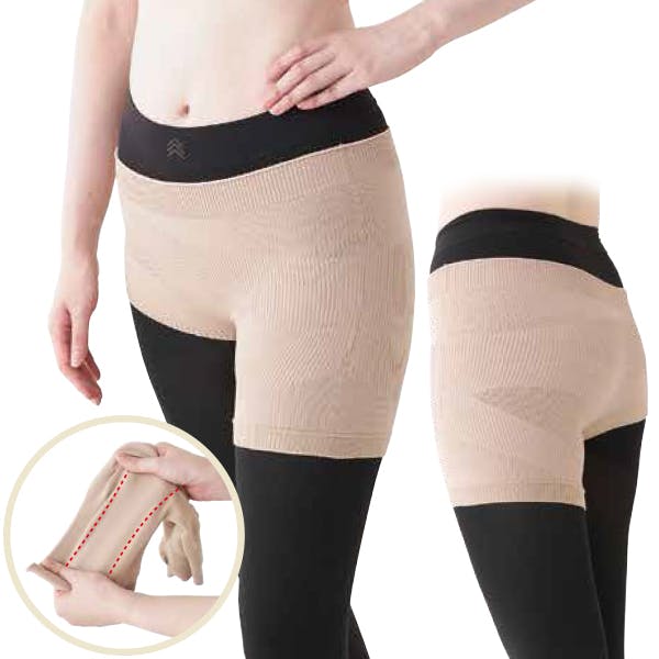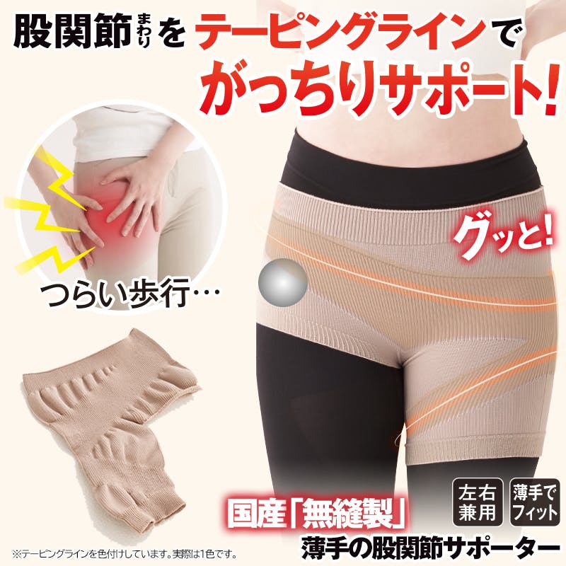 【無縫製 国産股関節サポーター S-M 】 ちあふる 股関節部分を中心に腰回り、足回りに配置されたテーピングラインでがっちりと股関節まわりをサポートするので、立ち上がりも、歩行もらくらく!歩行サポート 薄手 左右兼用 日本製 JAN:4580372172773