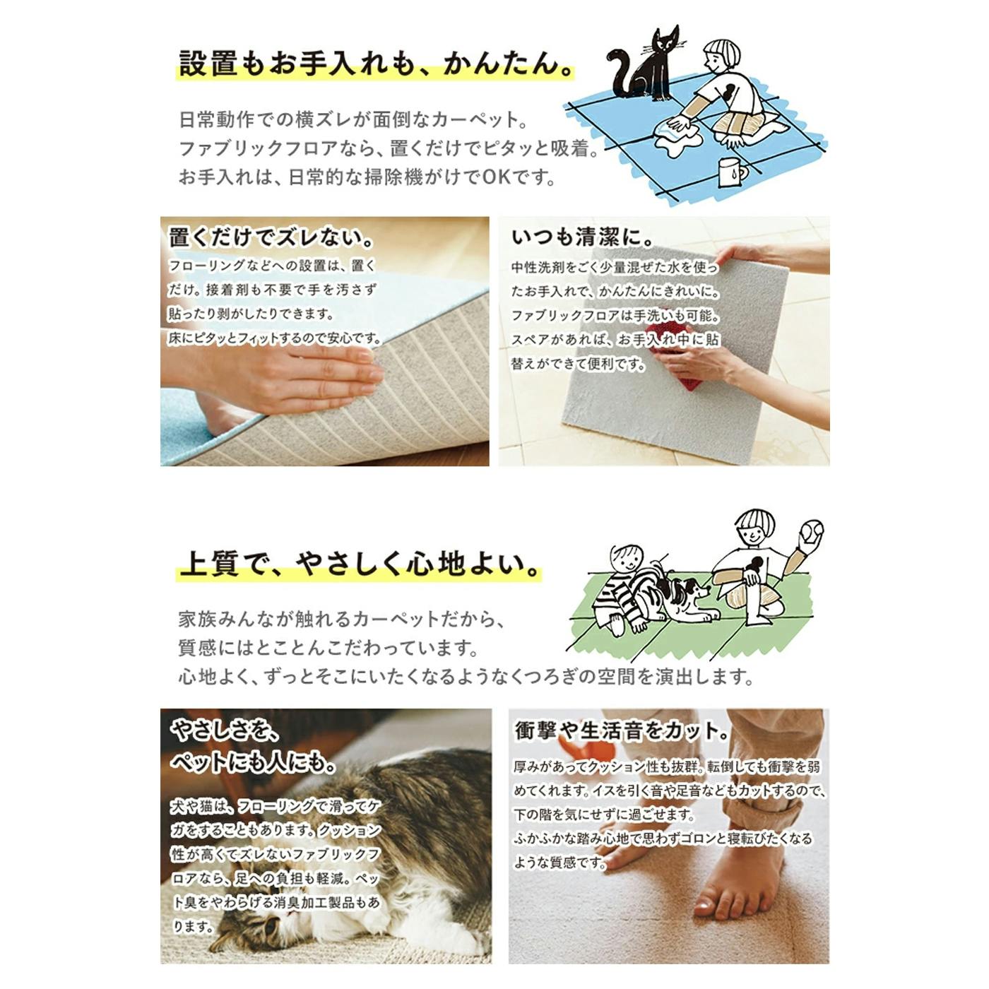 パイル:BCFナイロン100%、バッキング:ソフトバックQ(裏面吸着加工)