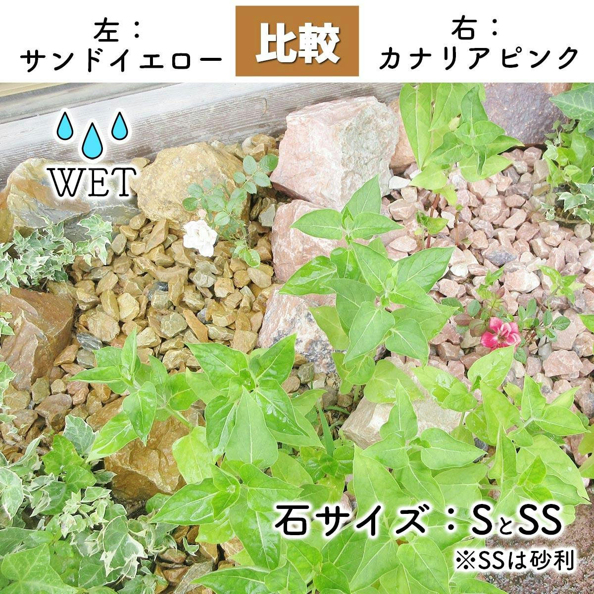 鮮やかなカナリアピンクが庭を明るく彩ります。濡れると一層深みが増し、植物の緑と美しいコントラストを作り出します。使いやすいサイズと形を厳選し、敷くだけでおしゃれなロックガーデンが完成。220kgの大容量セットで広い範囲にも対応可能です。