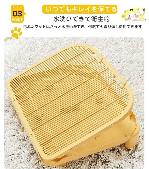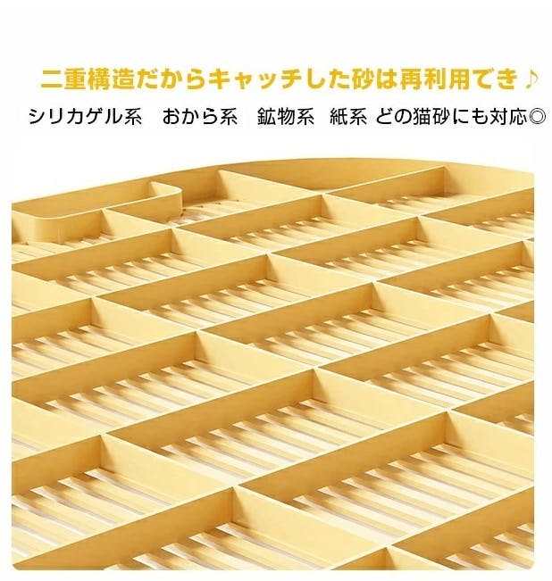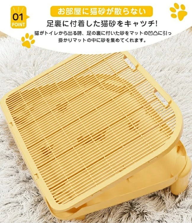 【二重構造】二重構造で、猫の足に付いた砂が落ちるとステップの間に挟まり、ステップの内部に集まった砂を再利用することができます。ペットの足裏に付いた砂などもステップの中に集めてくれます。猫砂の飛散を防ぎ、猫のトイレの周りを清潔に保ち、清掃時間を節約します。