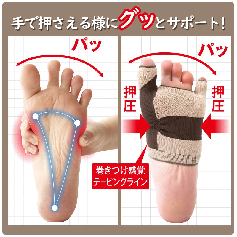 【無縫製 国産外反母趾サポーター (左右1組)】 ちあふる 綿混爽快!テーピングラインが足指をグッとサポート。薄手で無縫製だから自然な着用感。靴下の重ね履きOK JAN:4580372172209