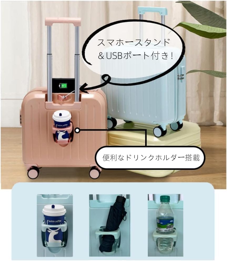 キャリーケース 機内持ち込み キャリーバッグ 小型 スーツケース キッズキャリーケース USBポート付き ドリンクホルダー ダイヤル式ロック 3段調節キャリバー Xベルト かわいい オシャレ 軽量 キッズ 子ども用 高校生 大学生 短期旅行 短期出張 3日2泊18インチ 46L 2.3KG