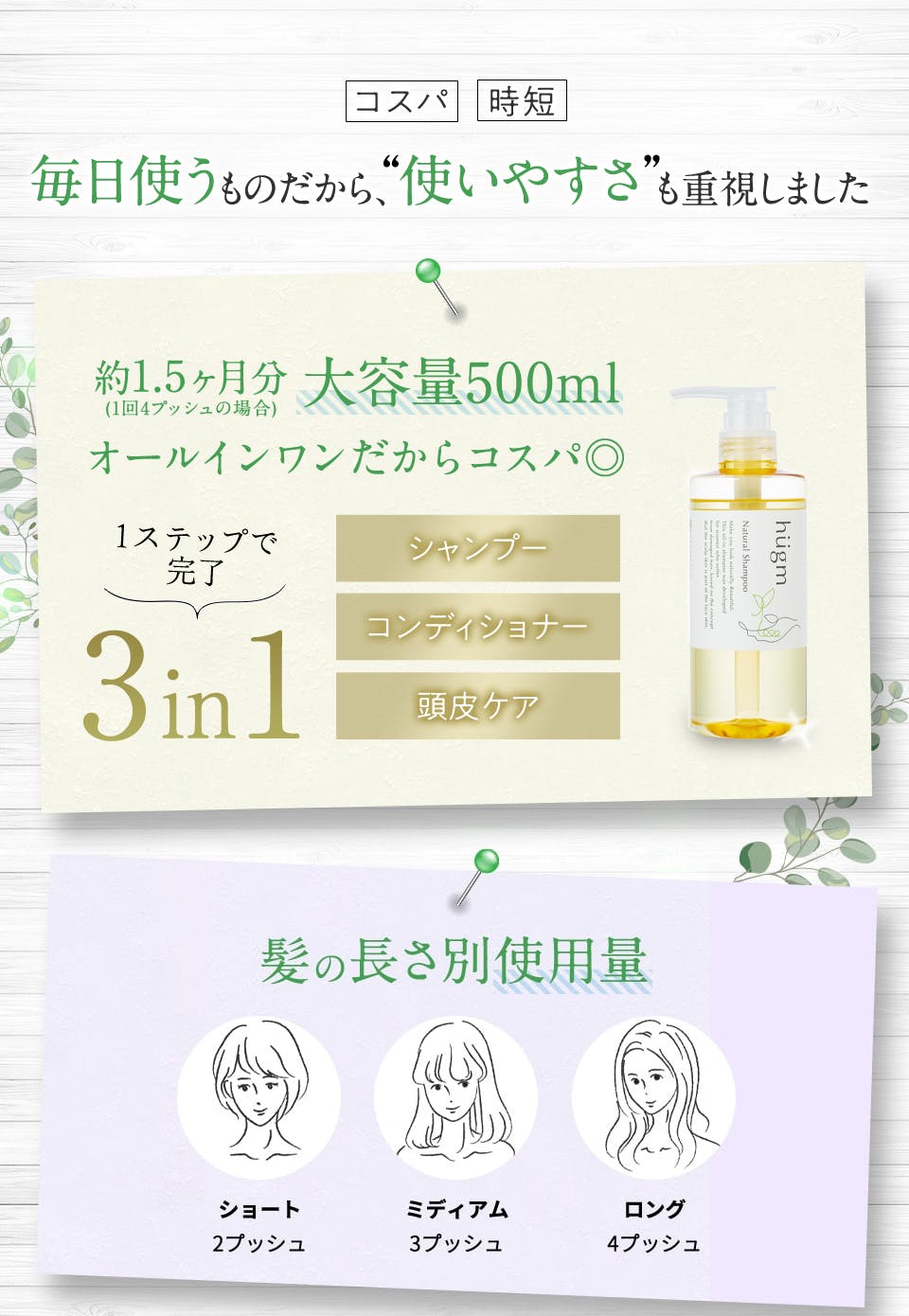 1回約3~4プッシュ(約10mL)のご使用で50回分(目安)
