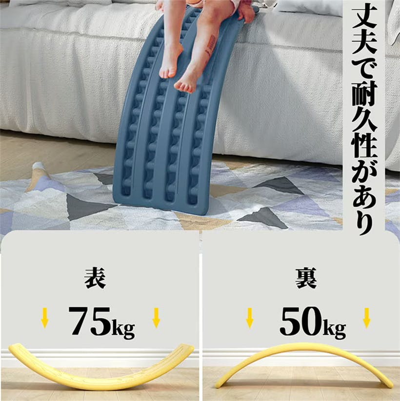 (角丸加工)バランスボードの角は角丸加工してあるので安心(表面滑り止め加工)足先の滑りを防ぐ波型加工で安心(底面滑り止めテープ)滑りやすい床面での使用も滑り止めテープが付属してあるので安心(耐荷重75kg)お友達や兄弟姉妹と一緒に遊んでも安心の耐荷重