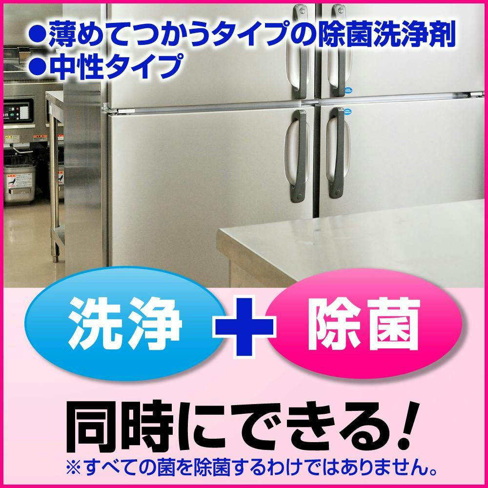 調理器具から環境清掃まで除菌ができる調理器具から環境清掃まで、除菌※・ウイルス除去※*ができる、中性の除菌洗浄剤です。プラスチックを傷めず拭き筋残りも気にならないので、食器・調理器具をはじめ、バックヤードや店舗に幅広く使えます。高い希釈倍率(300倍)でも充分な洗浄力。濃縮タイプで、経済的。※すべての菌・ウイルスを除去するわけではありません*エンベロープタイプのウイルス1種で効果を検証