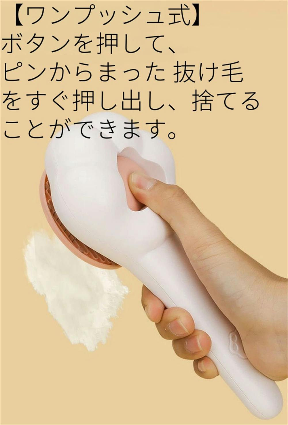 ブラッシン背面のボタンを押して、付いた抜けた毛を完全に押し出すことが簡単にできます。また、このブラシのハンドルは人間工学に基づいてのデザインを採用しており、長期間で安全に使用することができます。