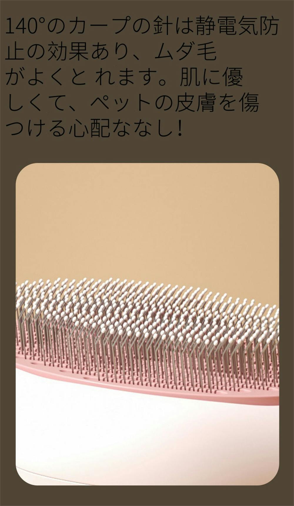 ブラシの先端は丸いデザインされ,ペットの皮膚に傷つけなく、スムーズにグルーミングができて、 結び目も処理できます。