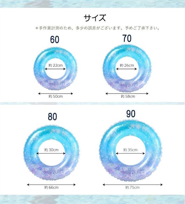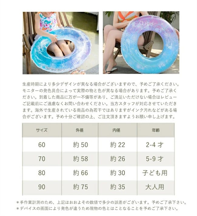 可愛い星空柄の浮き輪がキラキラしたかけらがたくさん入り、無視できないほど目立つ存在です。大人とお子様に適用するだけでなく、遊び方も様々です。夏を存分に楽しみましょう