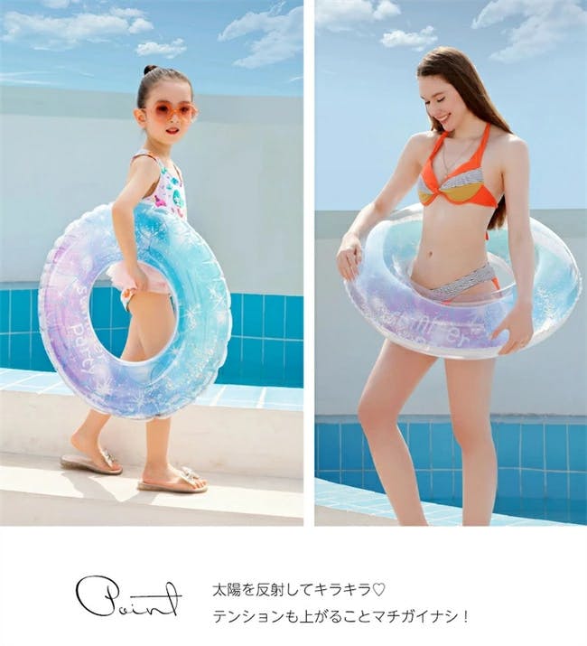 可愛い星空柄の浮き輪がキラキラしたかけらがたくさん入り、無視できないほど目立つ存在です。大人とお子様に適用するだけでなく、遊び方も様々です。夏を存分に楽しみましょう