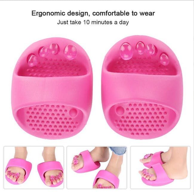 指をぐぐっと開く5本指トゥパッド。むくみや疲れで固まった指先の血流を促進し、気持ちよくほぐしてくれます。底のイボイボは大小さまざま。足裏と土踏まずをやさしく刺激し、ツボ押し効果も。