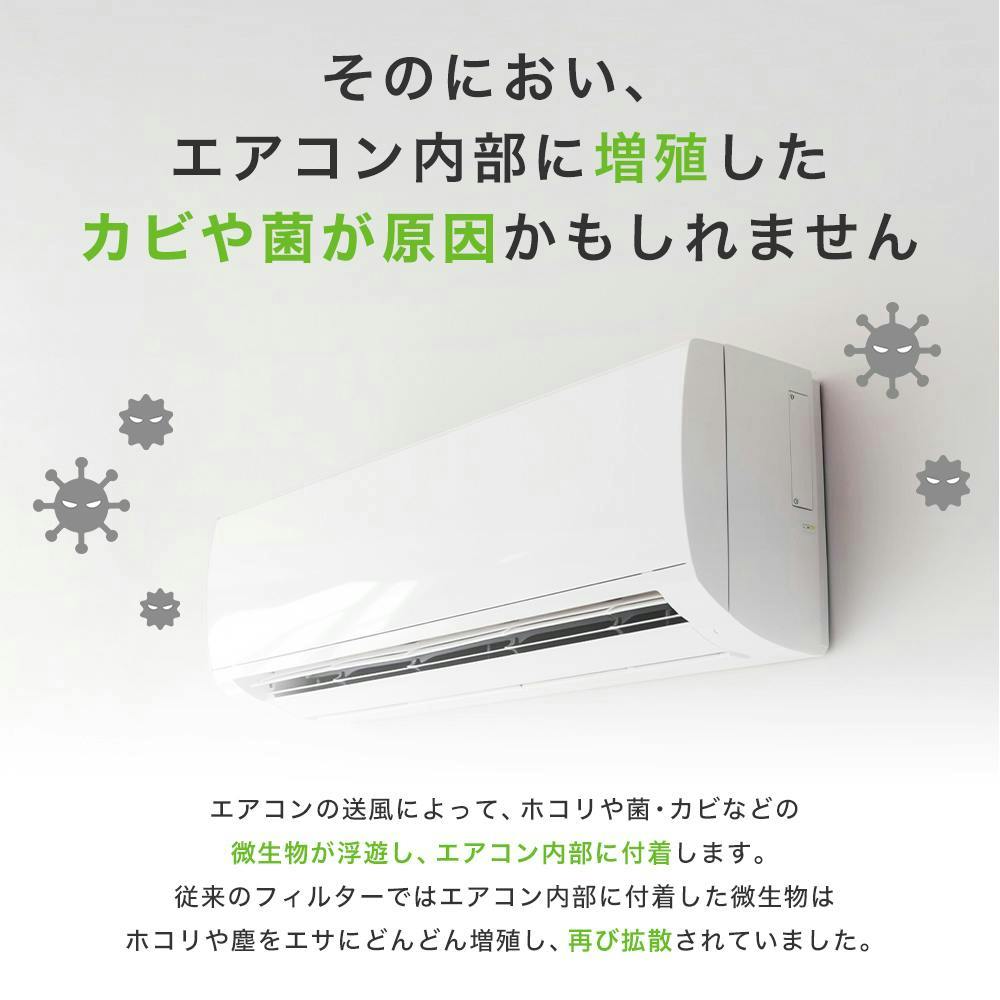 従来のフィルターでは付着した微生物はほこりや塵をエサにどんどん増殖し、においの原因や部屋中に拡散してしまうことも。スターフィルターのカビブロックバイオ酵素フィルターなら循環するお部屋の空気をきれいにします。