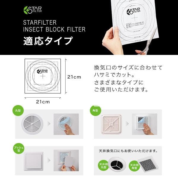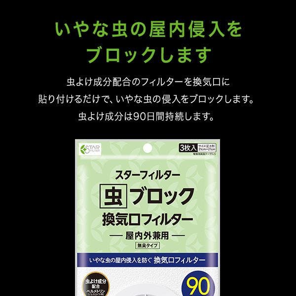 スターフィルター 虫 ブロック 換気口 フィルター 【3袋まとめ買い】 21×21cm 3枚入 通気口 給気口 虫よけ成分配合 ホコリ ダニ 防虫 屋内用 シールタイプ